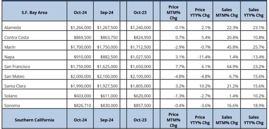 Recent data shows that Bay Area home prices were stable month-over-month. Some counties saw slight declines, while others had modest growth. San Francisco had a 7.7% MTM price rise. It may signal a revival in urban property values. Meanwhile, Alameda saw a small dip of -0.1%, but year-over-year (YOY) prices are still up 2.1%.